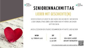 Lieder sind ein Ausdruck unseres Herzens und der jeweiligen Generation. So werden wir an dem Nachmittag Lieder der älteren Generation singen und dabei spannende Dinge