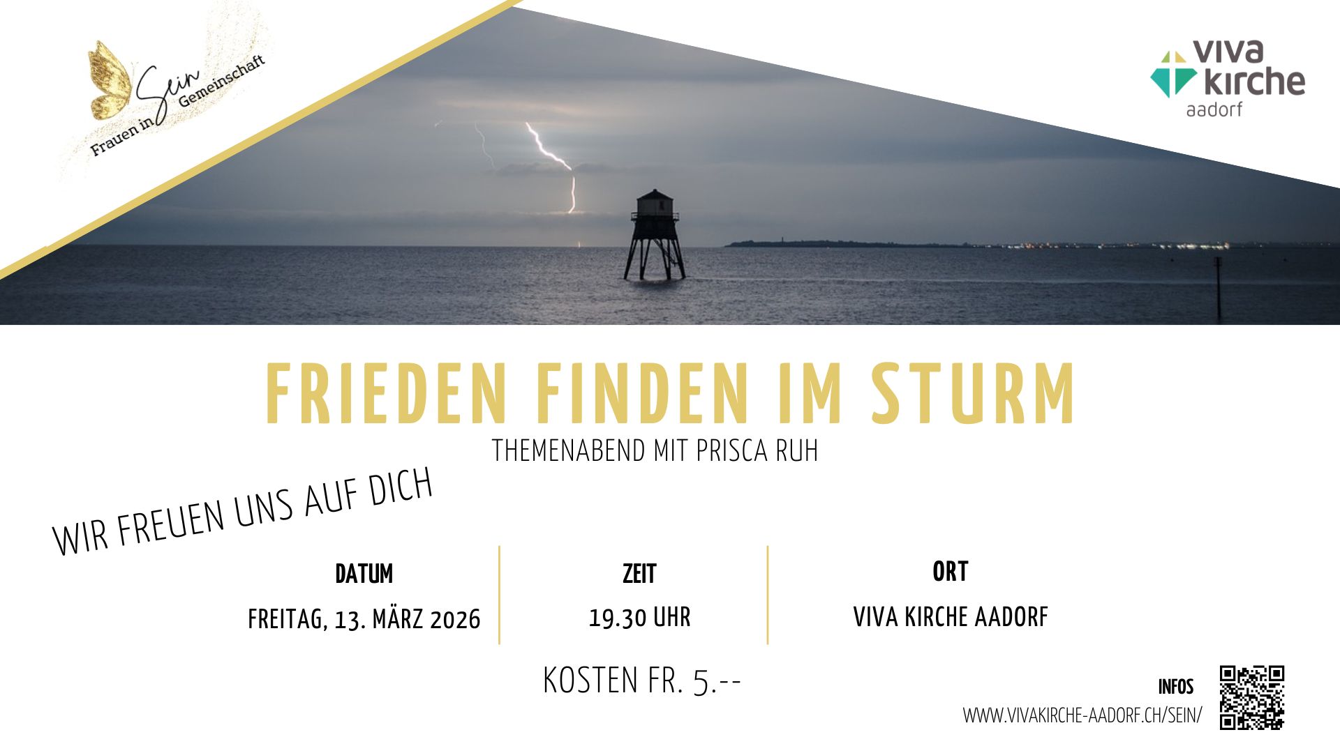 Frieden finden im Sturm. Darum wird es am nächsten Frauenabend am Freitag, 13. März gehen. Prisca Ruh (Lebensberaterin) wird kein klassisches Referat halten, sondern nimmt uns in Form einer Demo mit auf einen Weg, wie wir uns auch in stürmischen Zeiten bei Gott bergen können. Ein spannender und ermutigender Abend für Frauen aller Generationen. Danach werden wir wie gewohnt gemütlich zusammen SEIN😃 bei Punsch und Kuchen.